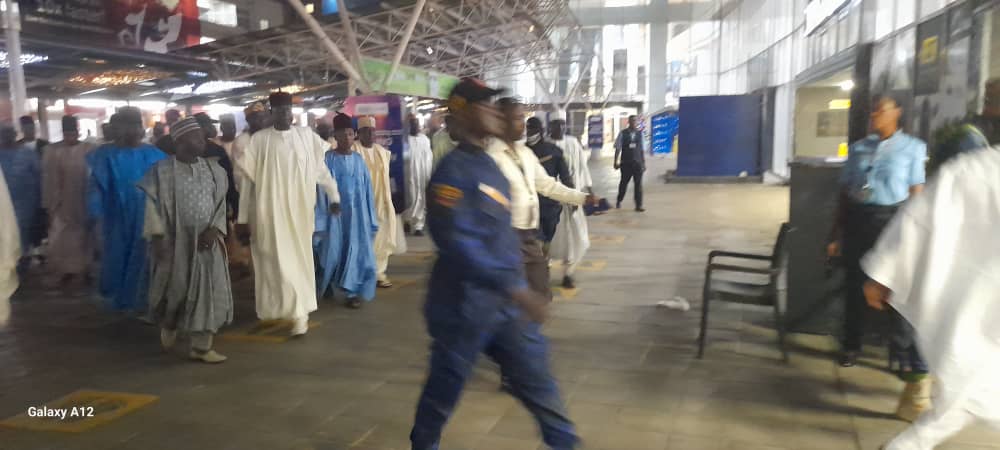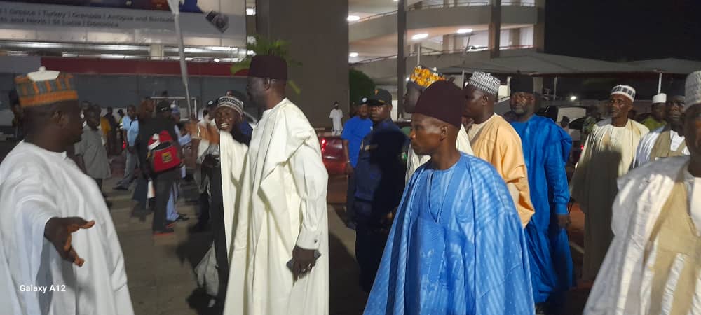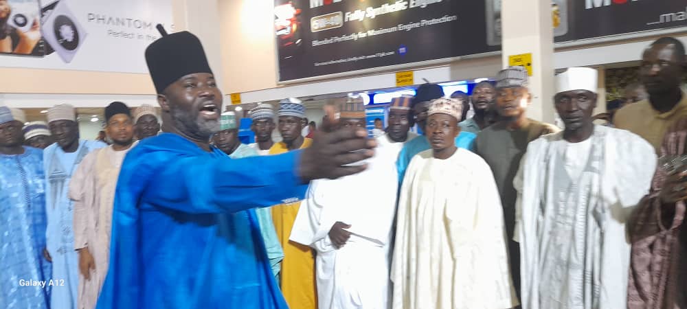 As the Shehu’s aircraft graced the tarmac, Mai Kanuribe emerged in a resplendent ensemble, leading a large entourage that included his Waziri, District heads, and Zannahs, – all bedecked in their intricately designed traditional garments. The scene at the airport transformed into a vibrant kaleidoscope of colors, symbolizing the deep-rooted cultural ties that bind these dignitaries.The delegation accompanied the Shehu of Borno among others include, Abba Masta Abba Yusuf (Ibrahim Wadaima of Borno), Abba Anas Baba Gana (Shettima Kuburi of Borno), Zanna Laisu (Kazalma) Secretary Borno Emirate Council) Zanna Kachalla (Kachalla Ajibazam of Borno), Zanna Sadu Ballama (Zanna Ballama of Borno), Alh Atif Tujani, Ahmed Shettima Mustapha of BRTV Maiduguri